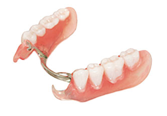 Ce type de prothèse permet de remplacer une ou plusieurs dents manquantes. Elle s’appuie sur les gencives et tient en place à l’aide de crochets prenant ancrage sur les dents avoisinantes.
